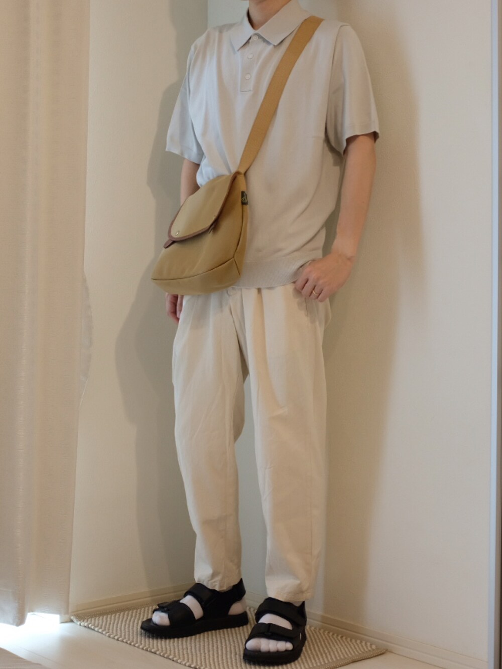 全身を白で統一してみました! 少し頼りない感じだったので、足元は黒のレザーサンダルで引き締め🐦⬛ バッグは何でも合いそうだな〜〜と思いつつ、お馴染みのBradyで安心感プラス🇬🇧