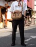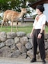 奈良2日目は秋色コーデ🍂 オレンジのスカーフがパンツとバッグの色を拾ってくれていい感じ◎ KOTOKAの革靴ならたくさん歩いてもへっちゃら👞