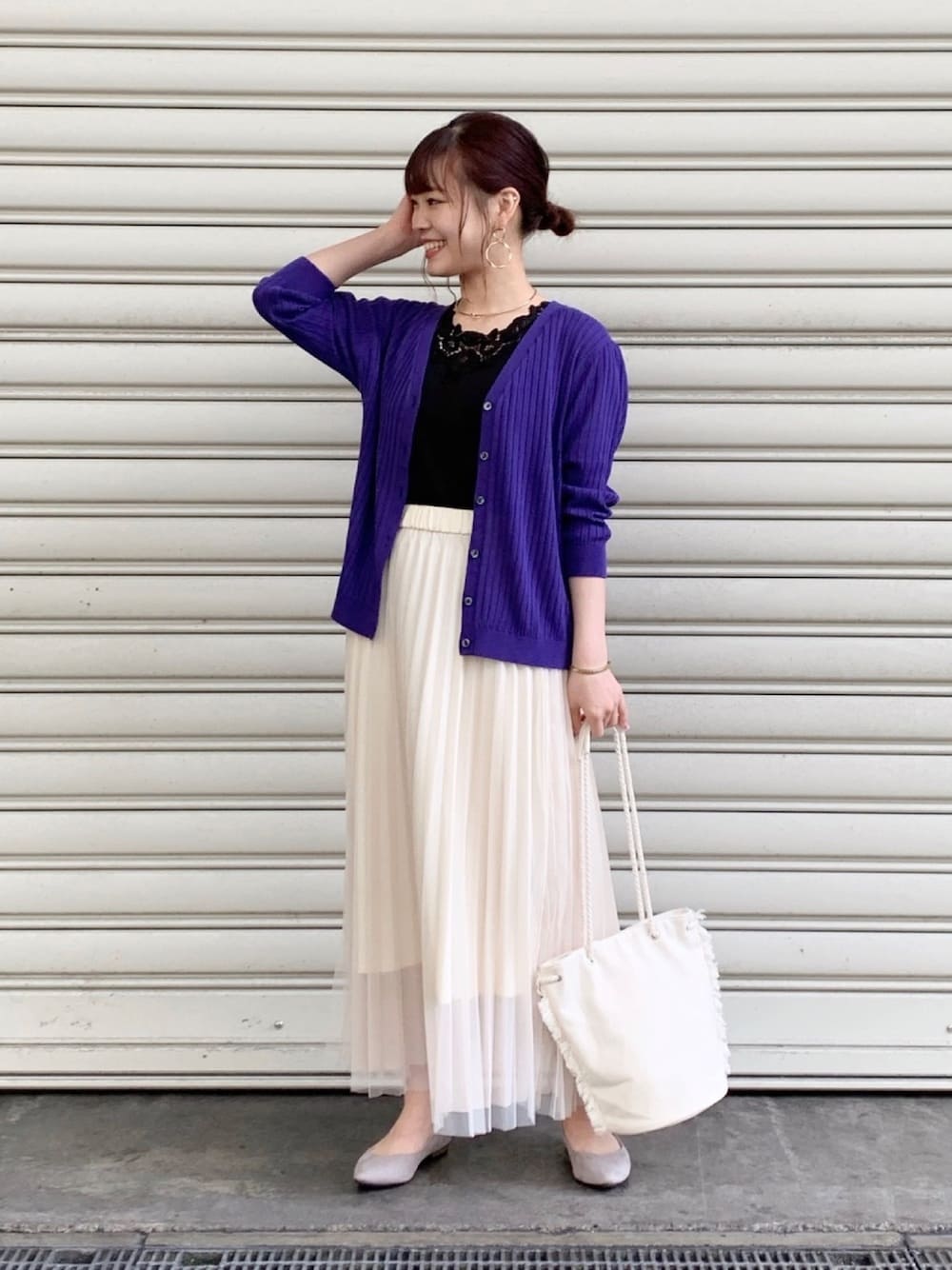 su8zu1koのカーディガン/ボレロ「リネンタッチリブカーディガン5分袖」を使ったコーディネート