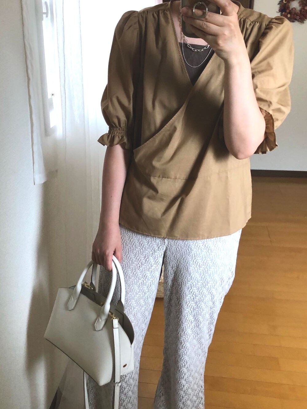 GUブラウスにレースパンツを合わせました。