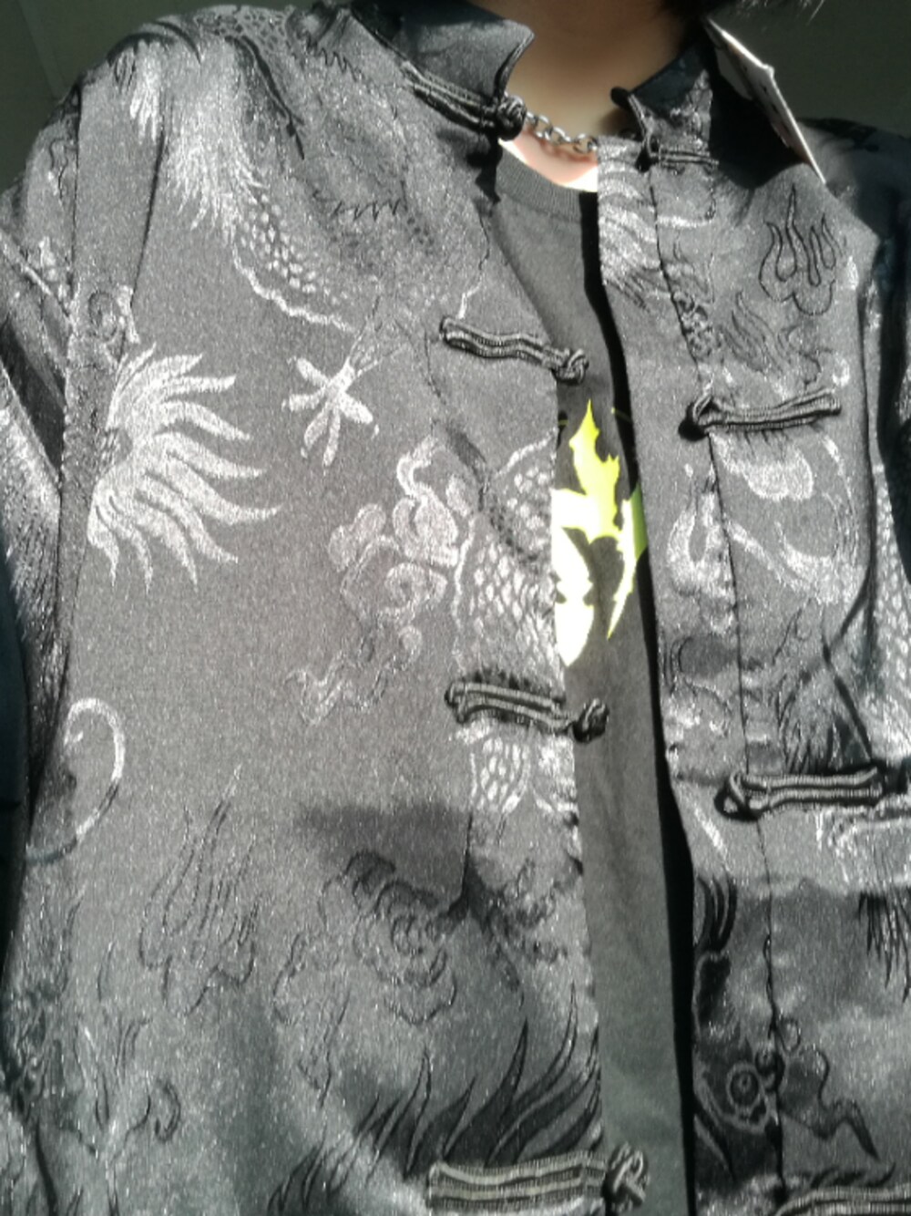 买来本以为会好看 结果面料一般 质量也不行 单看这个照片感觉还行 就是感觉等一下我就去公园打太极