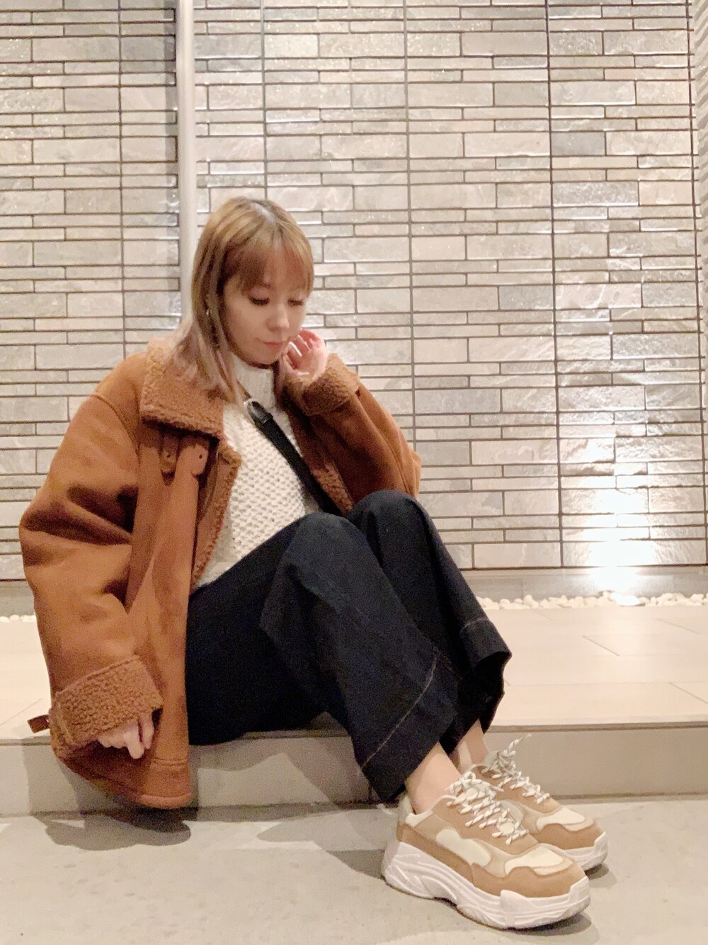 SUB-rhymeのムートンコート「フェイクムートンボンバージャケット」を使ったコーディネート