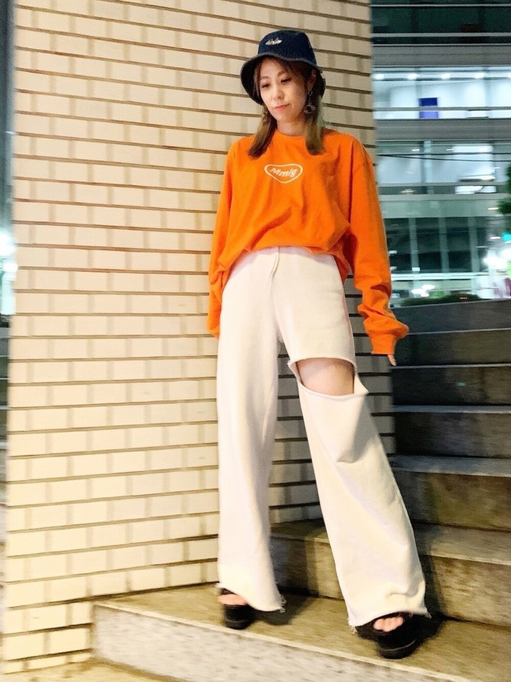 ダメージなスウェットパンツ可愛い😆 夏色な感じで... スニーカーじゃなくて厚底にして足グキっなりました😃