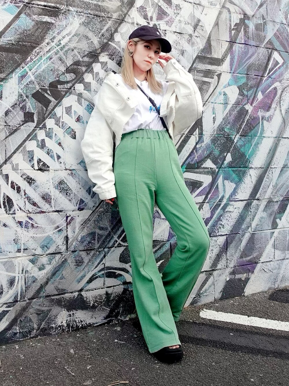 SUB-rhymeのスウェットパンツ「ピグメントスウェットフレアパンツ」を使ったコーディネート