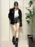 モノトーンでシンプルにまとめました✨️ トレンドのクロップド丈にショートパンツ!