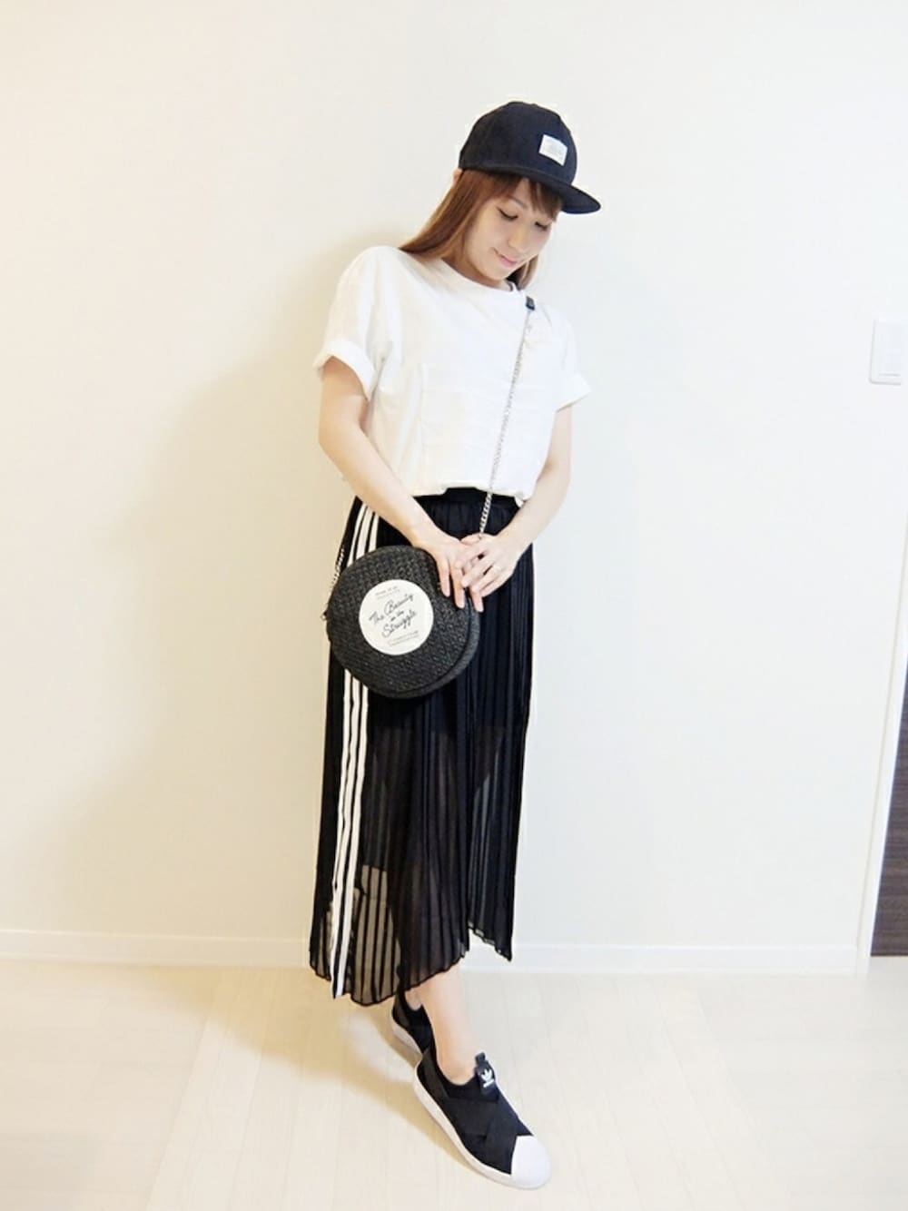 今日は珍しくハイペースで投稿🎶 大好きな大好きなadidasコーデです💓(°∀°) Tシャツはメンズのものです☆ バランス考えて袖を折り返しました! このTシャツよく見ると胸元にホワイトのワンポイントと袖に3本ライン入ってるんですよー🎶 見えないのがもったいない💦 このプリーツスカートはめちゃくちゃ涼しい‼‼(^^) スケスケ💓わぁ~ぉ❤←よくある効果音再び💦 サイドに3本ライン入ってる所がかっこいいですよね~‼ 皆様いつもありがとうございます‼(*^^*)