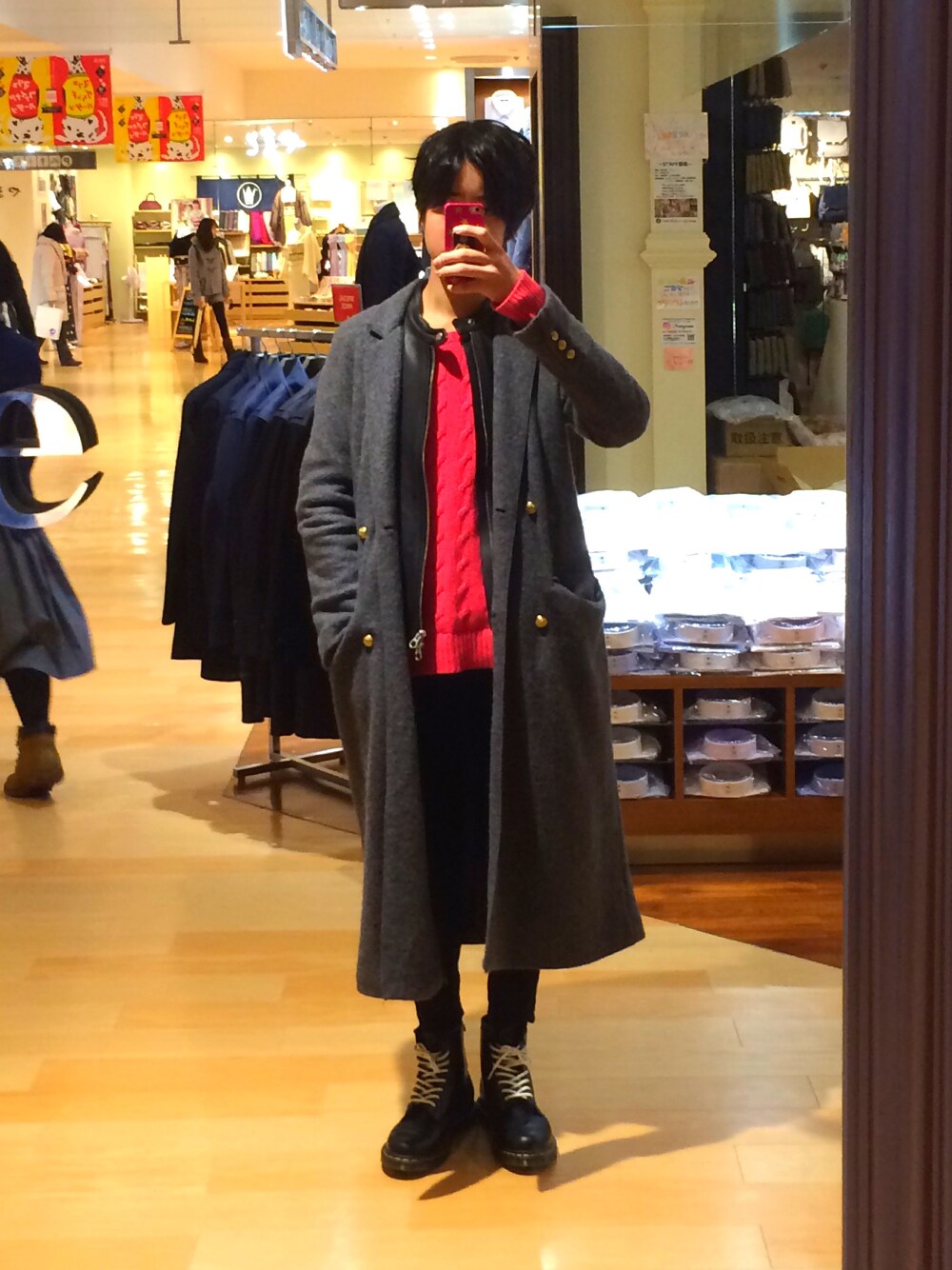 アウターオンアウターに挑戦! ライダースが風を通さないのでとても暖かい。 ロングのグレーチェスターのインパクトがすごいのでとてもカッコよくまとまりましたっ!