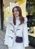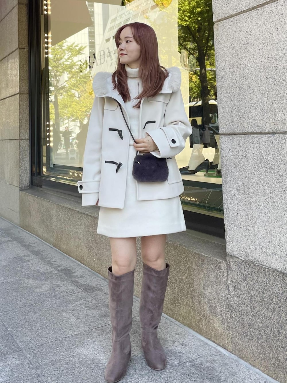少し平成を感じるファー付きダウンコートとミニスカをホワイトでまとめました。