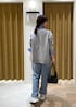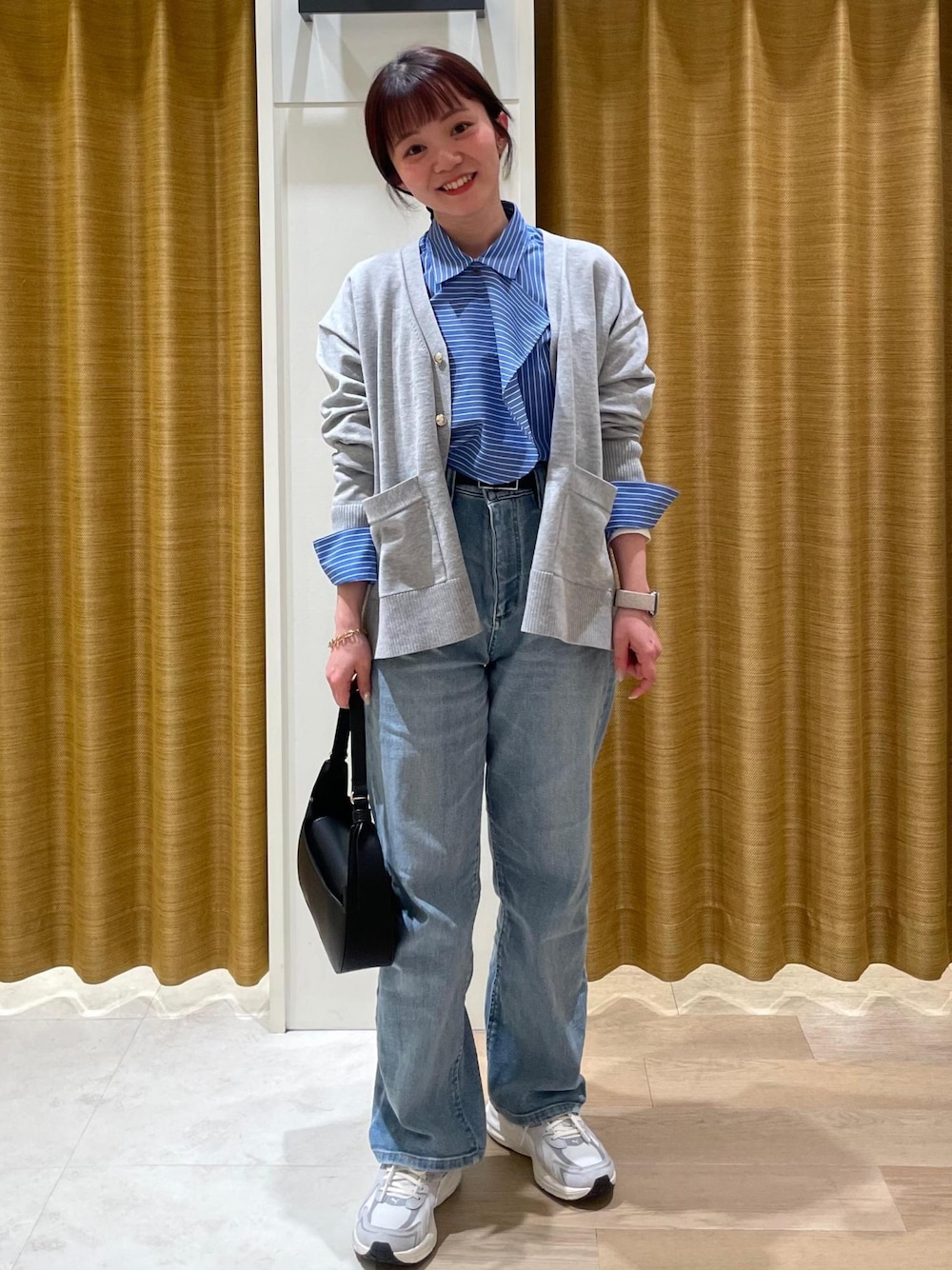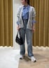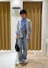 シンプルでメンズライクなブルーのストライプシャツをボウタイ風アレンジで少し可愛くシンプルなコーデにしてみました。