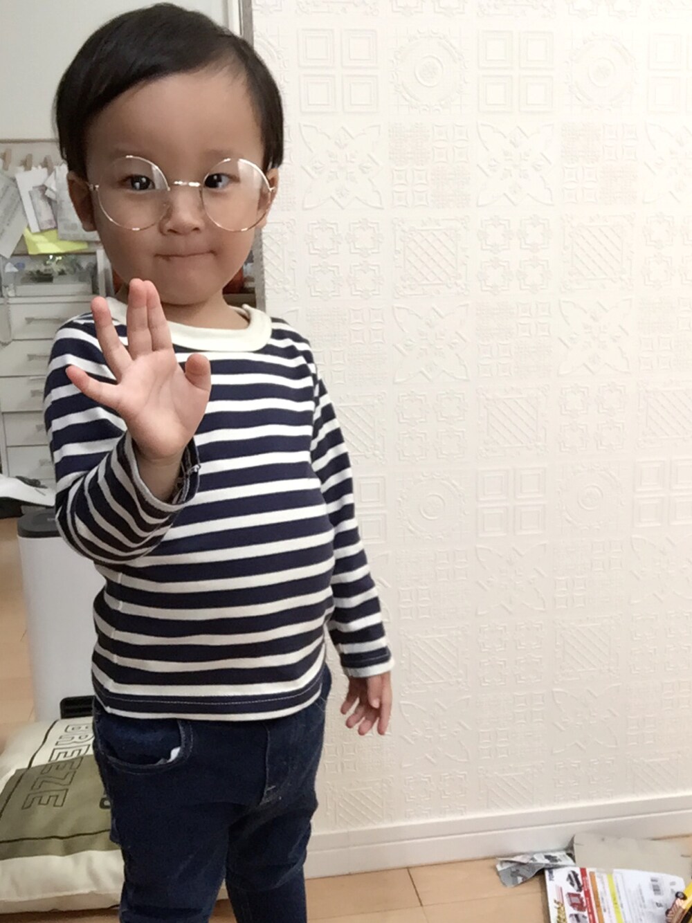 最近だてめがねがブームの息子氏。 トップスに付属のバンダナを巻いてたけど、嫌だったみたいで取られちゃった。。笑