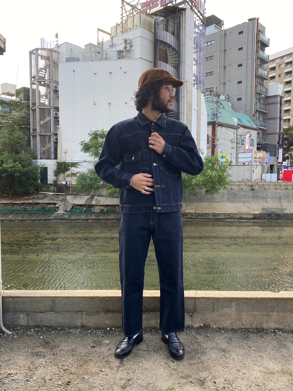 16オンスデニムのセットアップコーデ。 JACKET:Lサイズ着用 ジャストサイズか少し余裕のある感じ。 PANTS:32インチ着用 ジャストサイズです。 【Schott South】 福岡県福岡市博多区住吉1-2-1 キャナルシティ博多ノースビル2F 092-409-3521