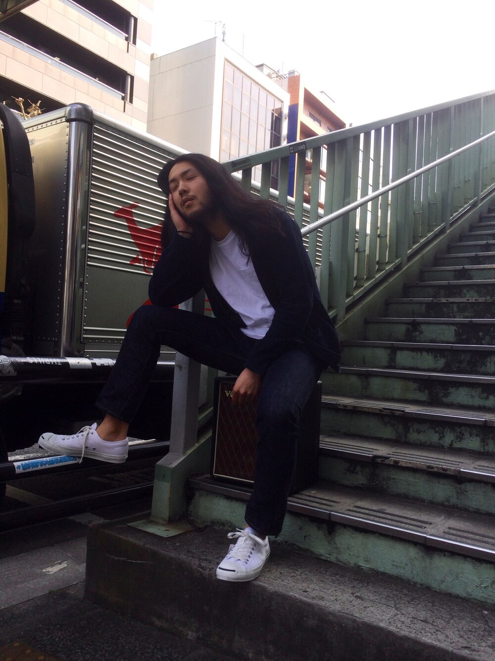 カーディガンを着てシンプルに。 春なんでひなたぼっこ。