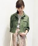 ゴールドのエレガントなスカートにアイクジャケットを合わせてミリタリースタイルに。 トップスをカジュアルな雰囲気をプラスすることで、綺麗目なスカートもデイリーな印象です。 初秋にお勧めなコーディネートです。