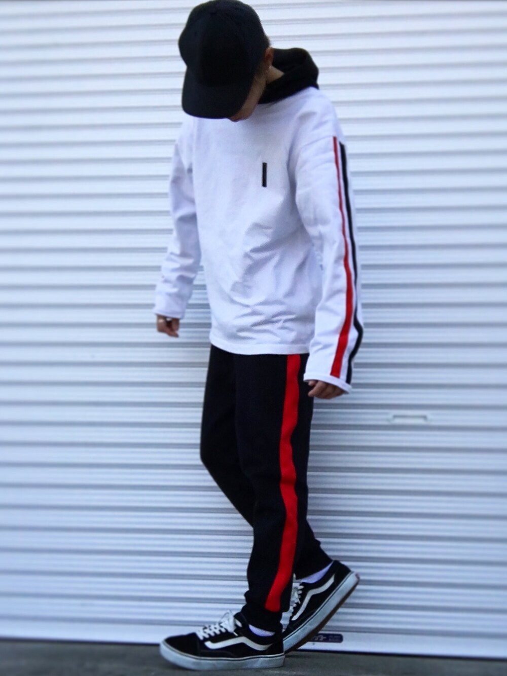 過去pic まだ気温が低めの頃にしたコーディネートです。 TシャツやロンTの中にパーカーを重ね着すると 着太りして見えますが、上に着るシャツを オーバーサイズで着用すればしっくりきます。 ZARAのスウェットパンツも履き心地がよく、 赤のラインの発色もしっかりしていてお気に入りです。