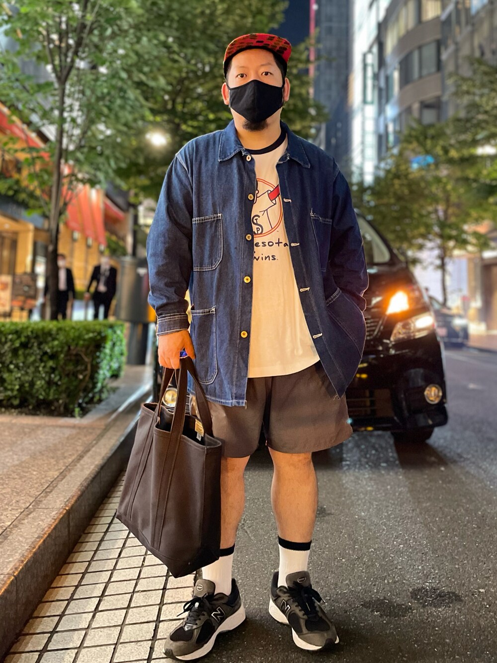 珍しい夜バージョンです。 帰る前です🤗 シュールなグラフィックがダサかわいい ミネソタツインズのリンガーTに、 グレーのバギーショーツ🐧 夜は少し肌寒いのでカバーオール羽織って ちょうど良い感じです👍 Tシャツとショーツとソックスとトートバッグ。 全部で4ペンギンです🐧🐧🐧🐧