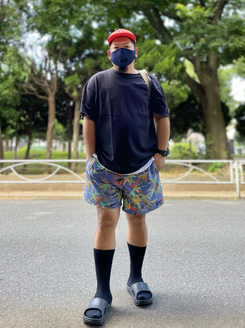 パタゴニアのバギーショーツに、 シンプルなチャンピオンのTシャツ。 楽ちんアメリカンです🇺🇸