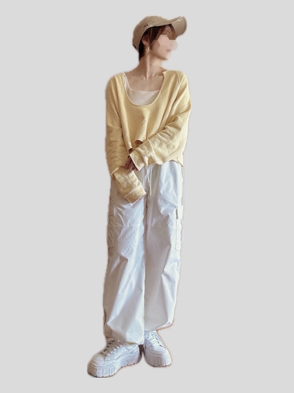 GUの人気なカップ付き ブラフィールタンクトップ 買ってみた おなか出ないちょうどよい短めな丈感˙ᵕ˙ デコルテが綺麗に見えるスクエア具合˙ᵕ˙ チープ感のないワッフル生地˙ᵕ˙ 買って良かったー˙ᵕ˙