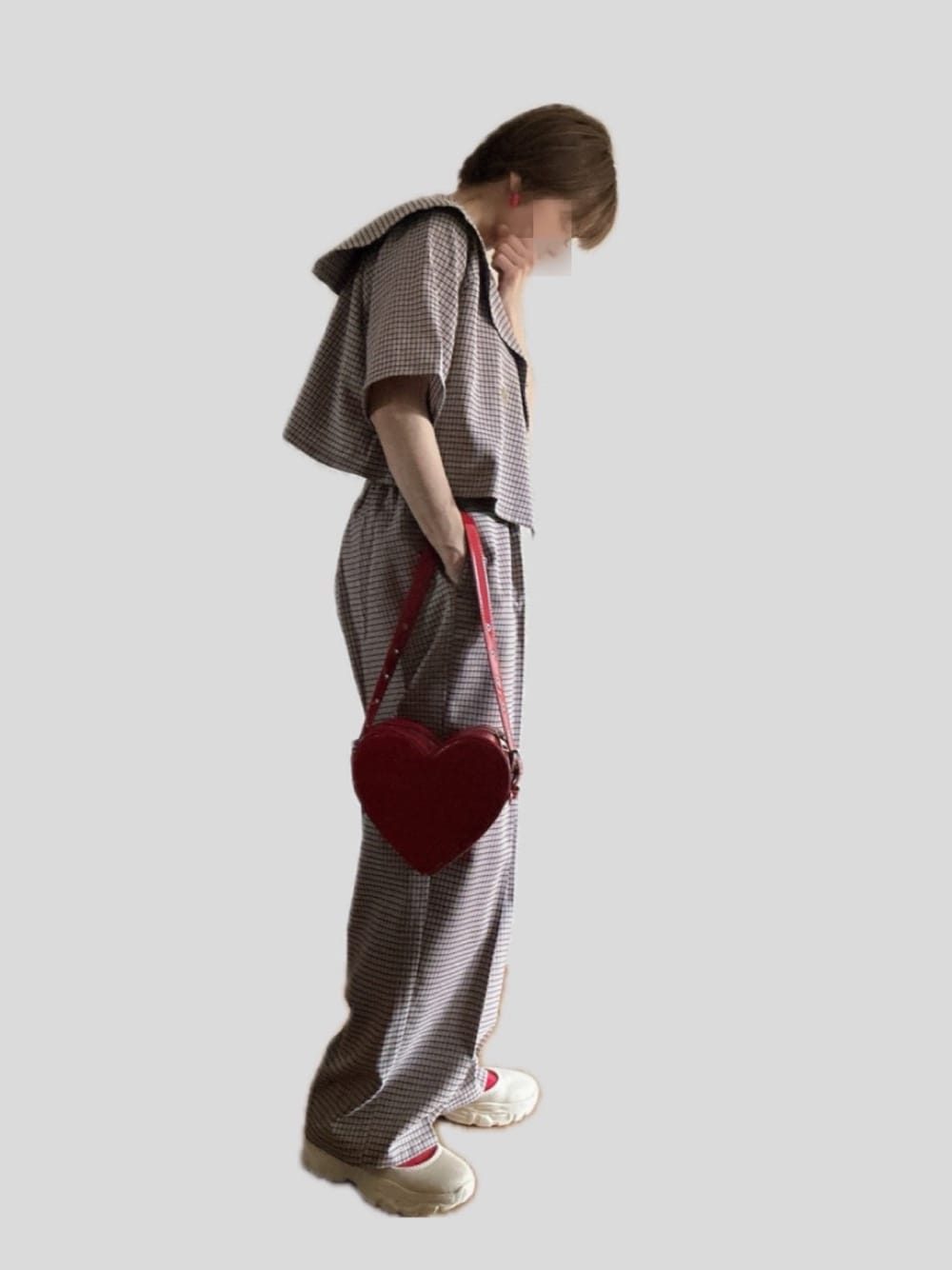 バッグ、イヤリング、ソックスで赤リンク🔗 セットアップはセーラーカラーがかわいい˙ᵕ˙ zozoでsaleの時に購入 GUのカップ付きインナーとネックレス 買ってよかったもの˙ᵕ˙