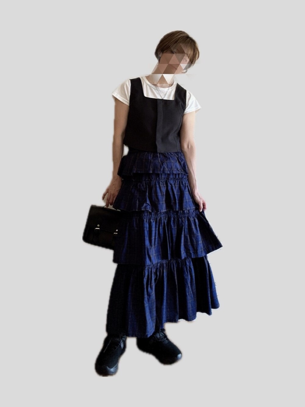 Availのスカート着回し 今回はモード寄り まだ暑いから半袖 カラーだけでもダークにしてみる