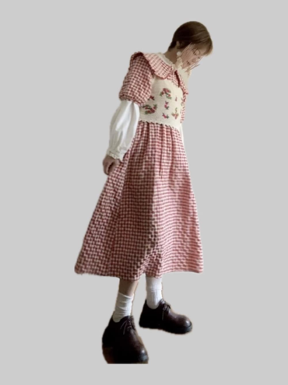 先月セカストで花柄ニットベスト購入 お値段700円 ワンピースに合わせたくて買いました˙ᵕ˙ サマンサモスモスやエヘカソポのお洋服に合いそう˙ᵕ˙ 5分袖ワンピースと長袖ブラウスをレイヤードして秋コーデ