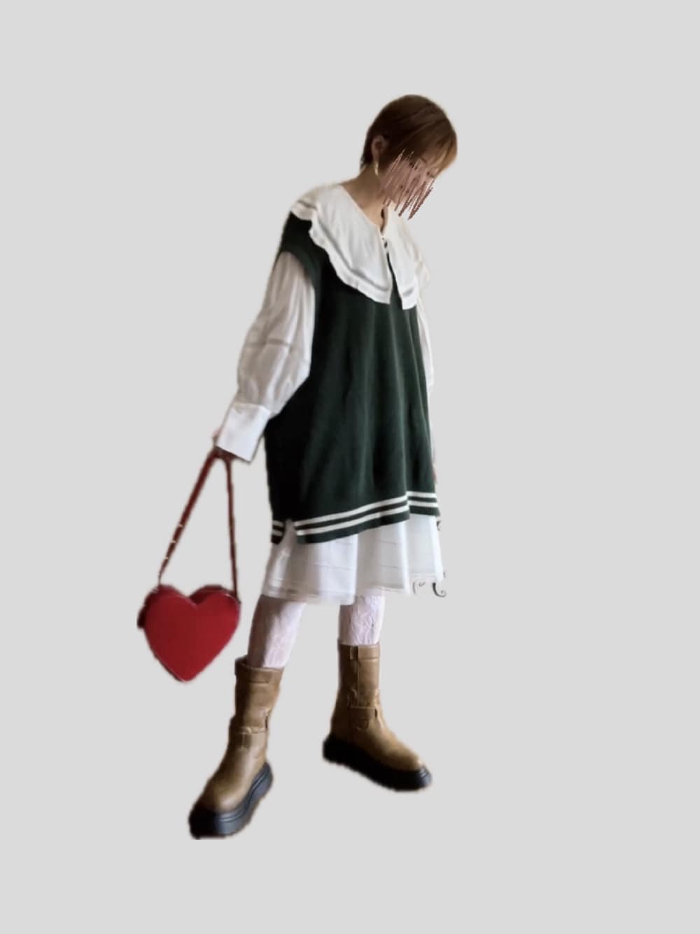 素足を出さずにミニスカートを着用したくてGRLでレースハイソックスを買いました˙ᵕ˙ 甘めなコーデなので ブーツで少し辛くしてみました