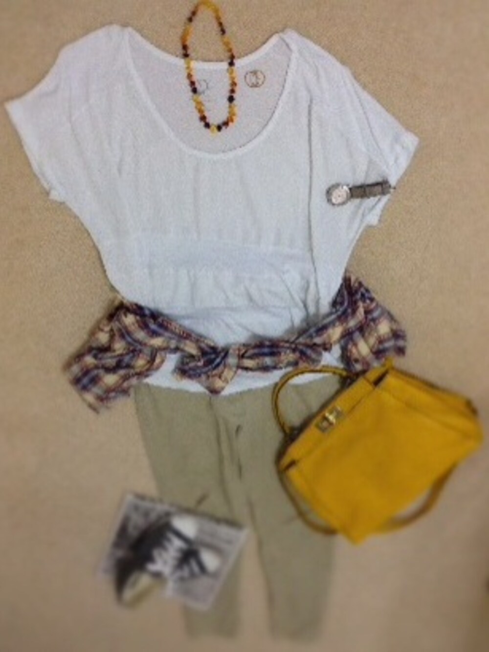 定番コーデです。 Tシャツ NY&COMPANY シャツ Libre パンツ rue21 靴 Convers インナーにグレー、マスタードイエローなどなどで、また印象が変わります。
