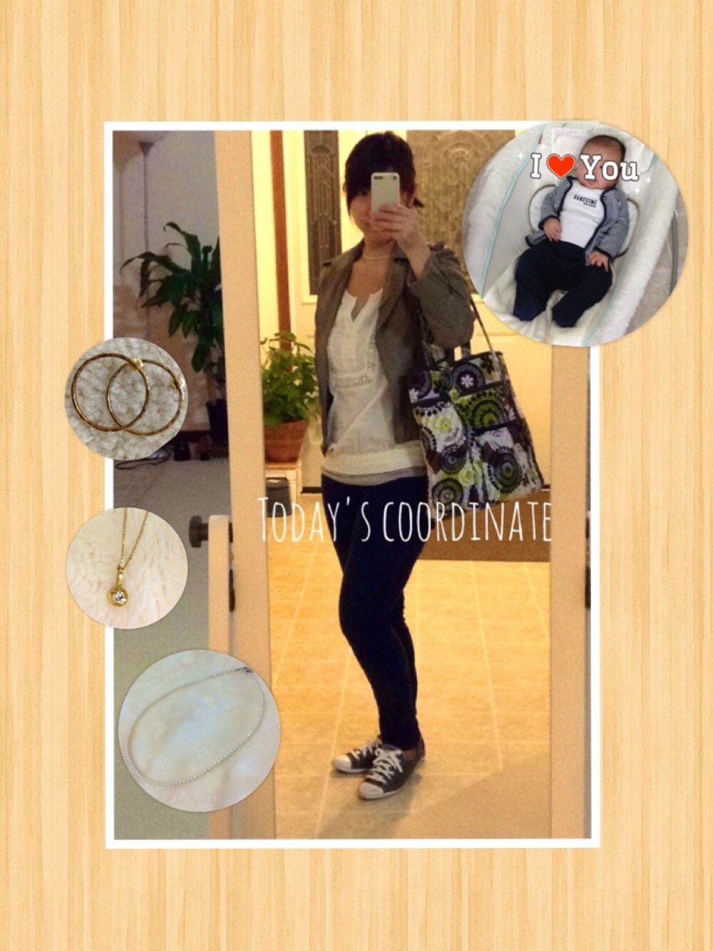 祝200万ダウンロード♡ 友人とのランチへ。 気軽なトラットリアなので足元はスニーカーですが、ベビーパールのネックレスをちょい足し。 ZADIG&VOLTAIREの革ジャン トップスはH&Mのペザントブラウスとタンクトップ。新規投入です。 gapのジーンズ コンバースのスニーカー ベビーパールのネックレスにプチダイヤのペンダント eteの輪っかピアス 昨日、時計は忘れました〜^^; 息子のちょっとお出かけ着は難しいですね …。もっと研究せねば。