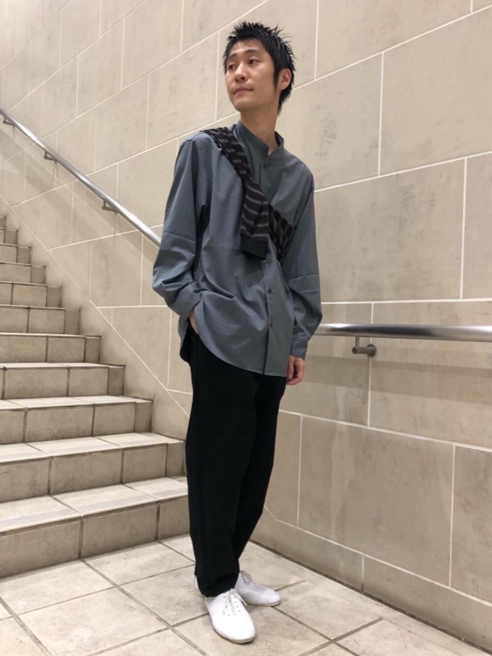 sugawarahのシャツ/ブラウス「OLT S140 WSBLビエラ ルーズ バンドカラー シャツ -ウォッシャブル・ストレッチ-」を使ったコーディネート