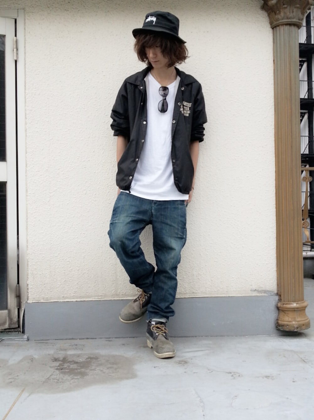 ワコマリアのコーチジャケットをさらっとはおってラフに