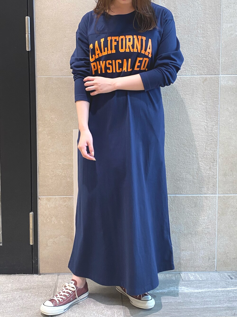 sugimotoのワンピース「『別注』Champion×Sonny Label フットボールロゴロングスリーブTシャツワンピース」を使ったコーディネート