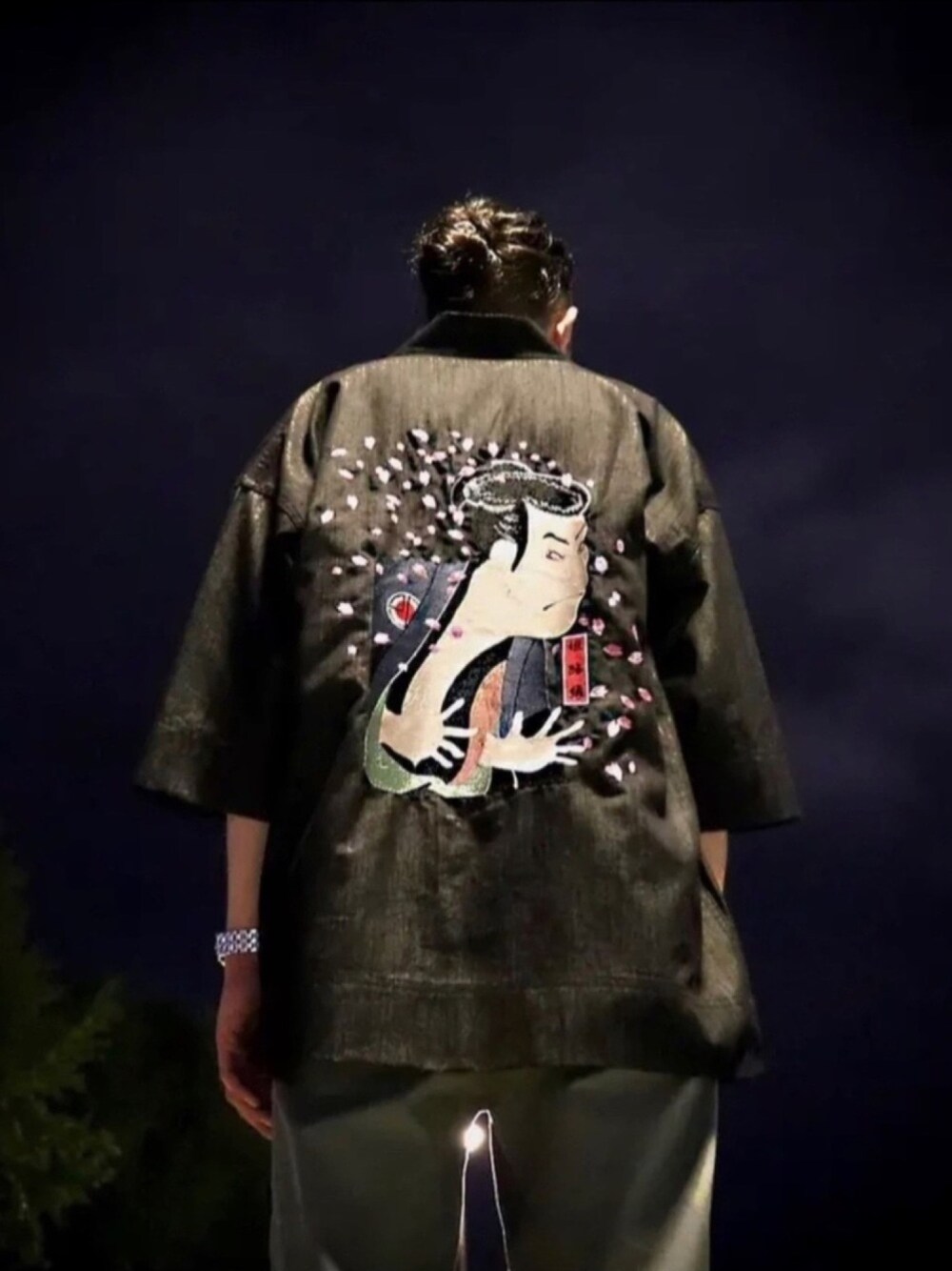 どうもこんばんは🌙 ぼくは、兵庫県 姫路市の姫路城の近くにある「Hmejien~姫路縁~」の杉本と申します。 『和服を日本観光のユニフォームに』をコンセプトに、様々な「#和服コーデ」を紹介していこうと思います。 どうぞ宜しくお願いします。 ーーーーーーーーーーーーー 今回は、当店のオリジナル商品の「法被」のご紹介です。 青空が似合うインディゴブルーと他に、ブラックがあり、生地の表面は、デニムのようなムラがあり程よく光沢感があります。 【観光のユニフォームにしたい】 このコンセプトの始まりはこちらの法被から始まりました。 「祭り」や「職人」どちらも日本文化のイメージが強いですよね? そもそも「法被」は、日本の伝統衣装で祭の時に着たり、職人さんが作業中に着たりする半纏(はんてん)のことです。 日本といえば…ということから着想し制作しました。 【デザイン説明】 背中には、「東洲斎写楽(とうしゅうさいしゃらく)」の『三世大谷鬼次の奴江戸兵衛(さんせいおおたにおにじのやっこえどべえ)』をモチーフに、周りには桜吹雪を合わせ刺繍しております。 (※)漢字だらけでごめんなさい🙇♂️ ーーーーーーーーーーーーー 「いいね♡」をくれたらめちゃくちゃ喜びます。 また、気に入った商品がございましたら、なんなりとコメント下さい!