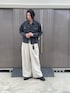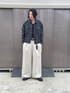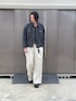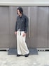 短丈のデニムジャケットにバギースラックスを合わせてAラインシルエットを作りました モノトーンで抑えてキレイ目な印象に