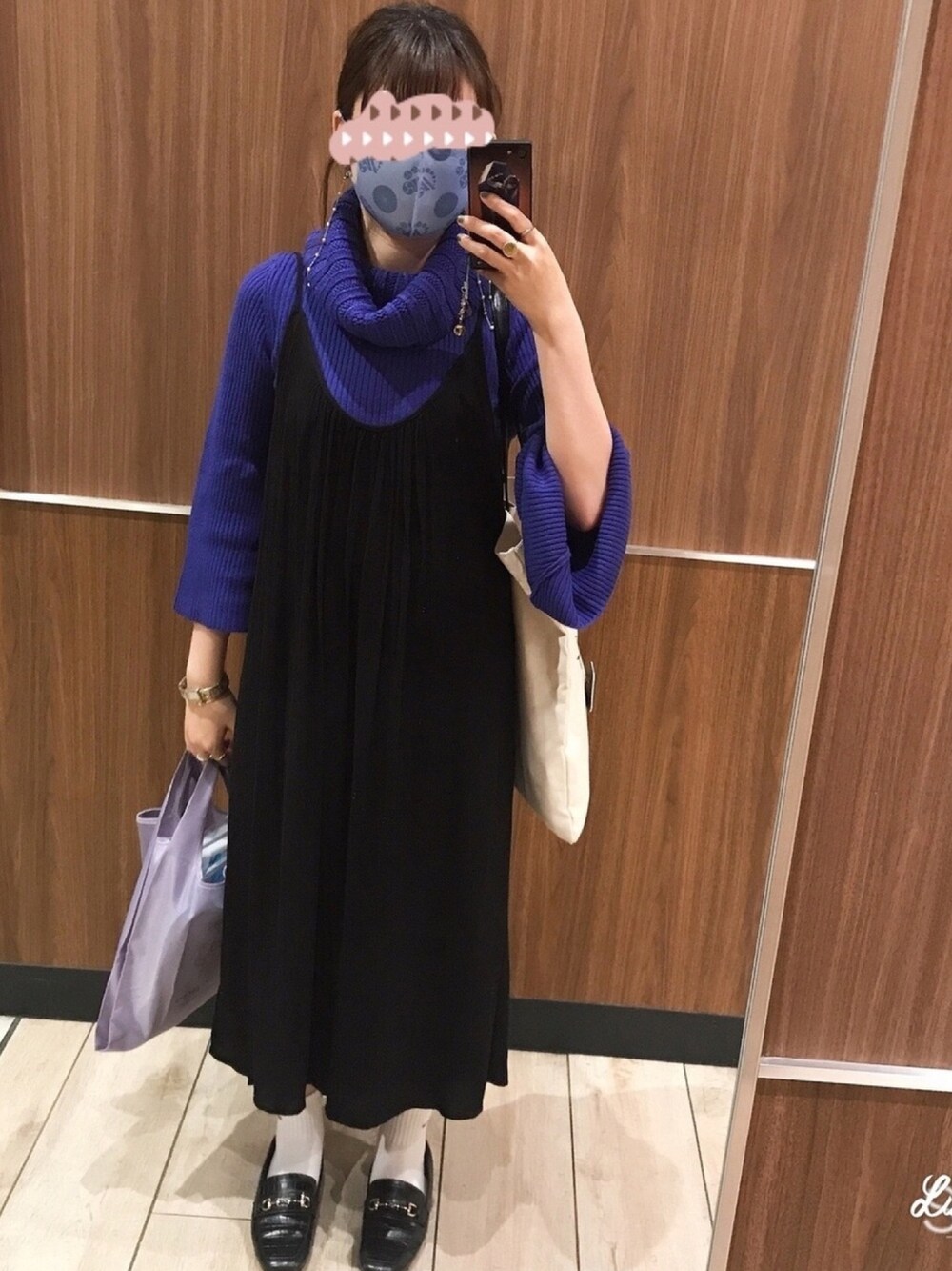 ずっと貰ったニットの着方が分からなくて、この春デビューさせる事が出来た! 袖がベルスリーブになっているので全然暑くないです。 まだ春寒いけど昼間が暖かい場合はこの様なニットでもいけます◎