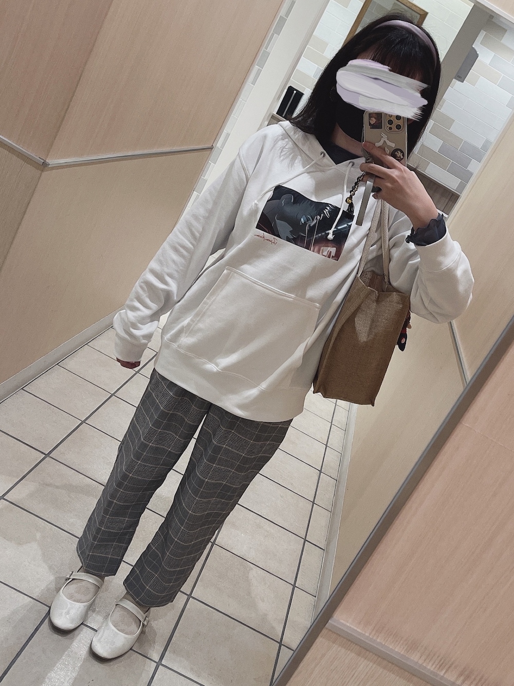 パーカーメインです。雨が降りそうな天気だったので、インナーにシアーインナーを合わせました。