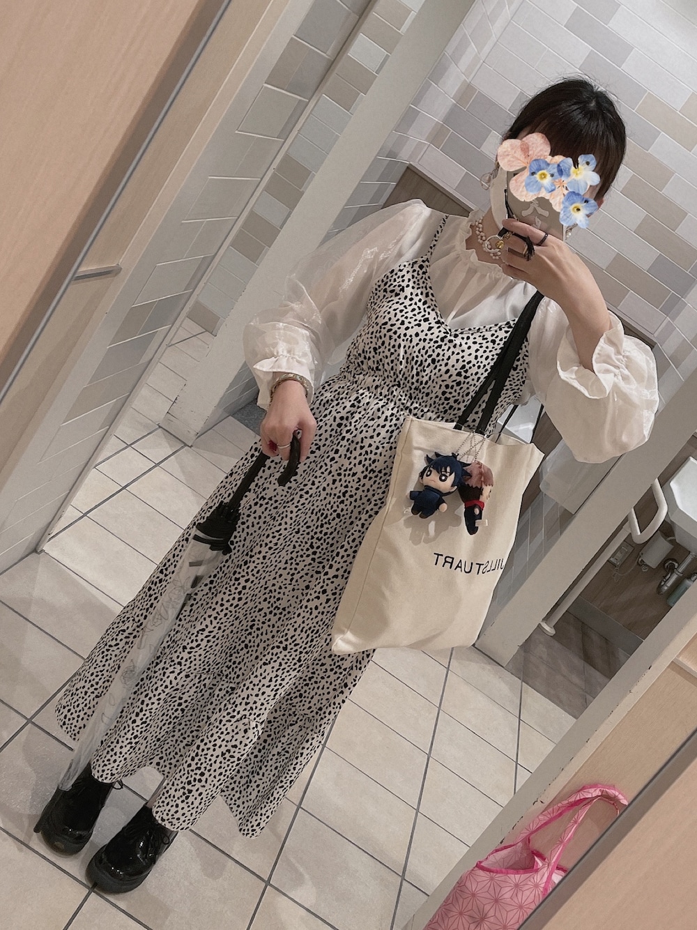 𝐬𝐮m̆̈𝐞𝐫𝐞 𓏲𓎨のワンピース「ダルメシアン柄フロントボタンVネックワンピース」を使ったコーディネート