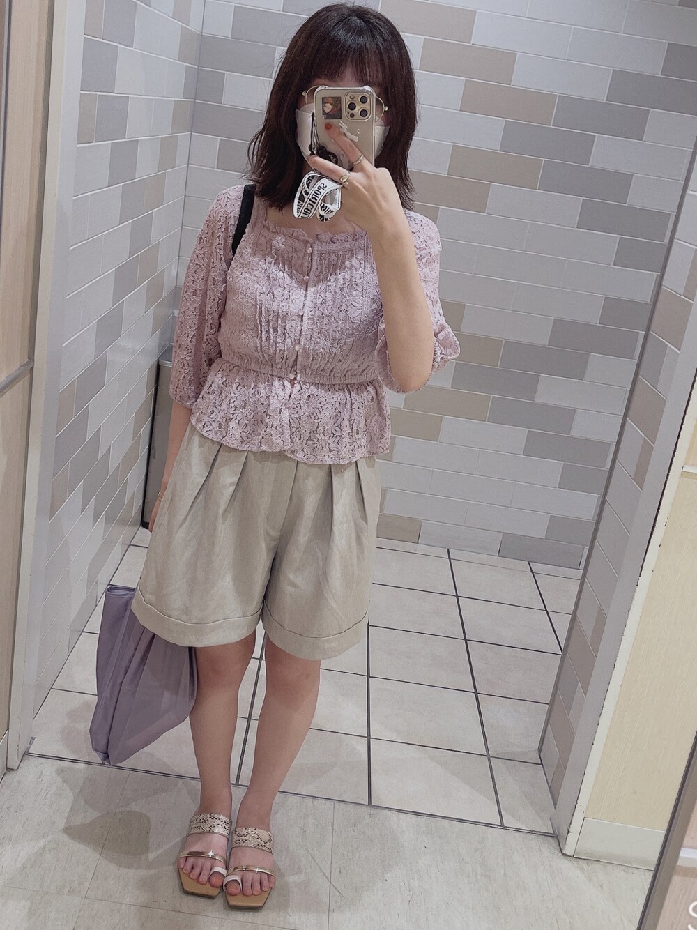電車乗る時に知らないお婆さんに褒められたコーデ!!!! サンダルの柄がとっても可愛いって言って貰えた♥♥ ショーパンとレーストップスがよく似合ってるって! 足元は特に日焼け止め塗り忘れ注意⚠️⚠️