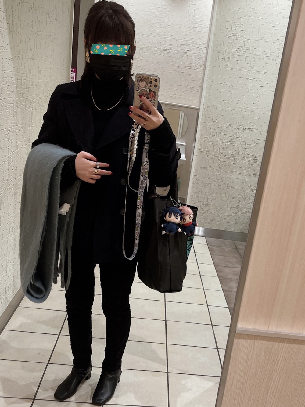 12月24日の呪術廻戦に参戦したコーデです♥ イメージは高専の制服と五条悟の目の色のマフラーでワンポイントで、あとはオールブラックコーデにしました。