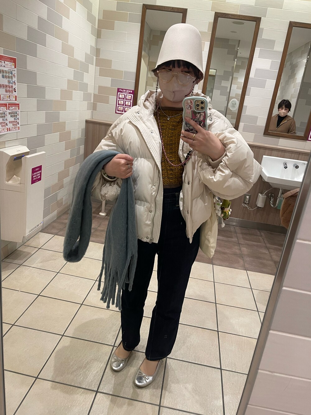 GRLの2dayカーディガンはyukieちゃん真似して購入して、凄くお気に入りで着回ししやすい♡ インナーはUNIQLOの半袖ヒートテックを着てるから、暑すぎず丁度いい🙆🏻♀️︎👍🏻 デニムの下には裏地毛のベージュタイツ履いてるので、全く寒さを感じない‼️