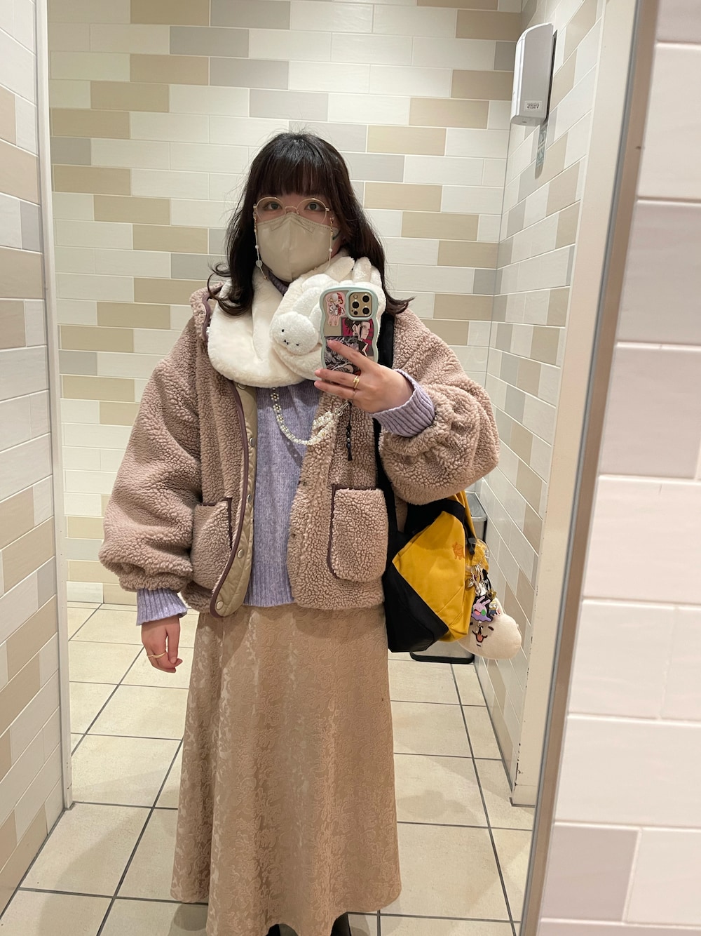2023.01.06 初詣コーデです❤️ 最高温度3度の寒かったので中に半袖ヒートテックと、足に裏地毛のレギンス履いてます🥾‼️ 冬になるとミッフィーのマフラー使うの楽しみで、隙あればコーデしてます🤣 小物殆どはlatticeの商品👀✨
