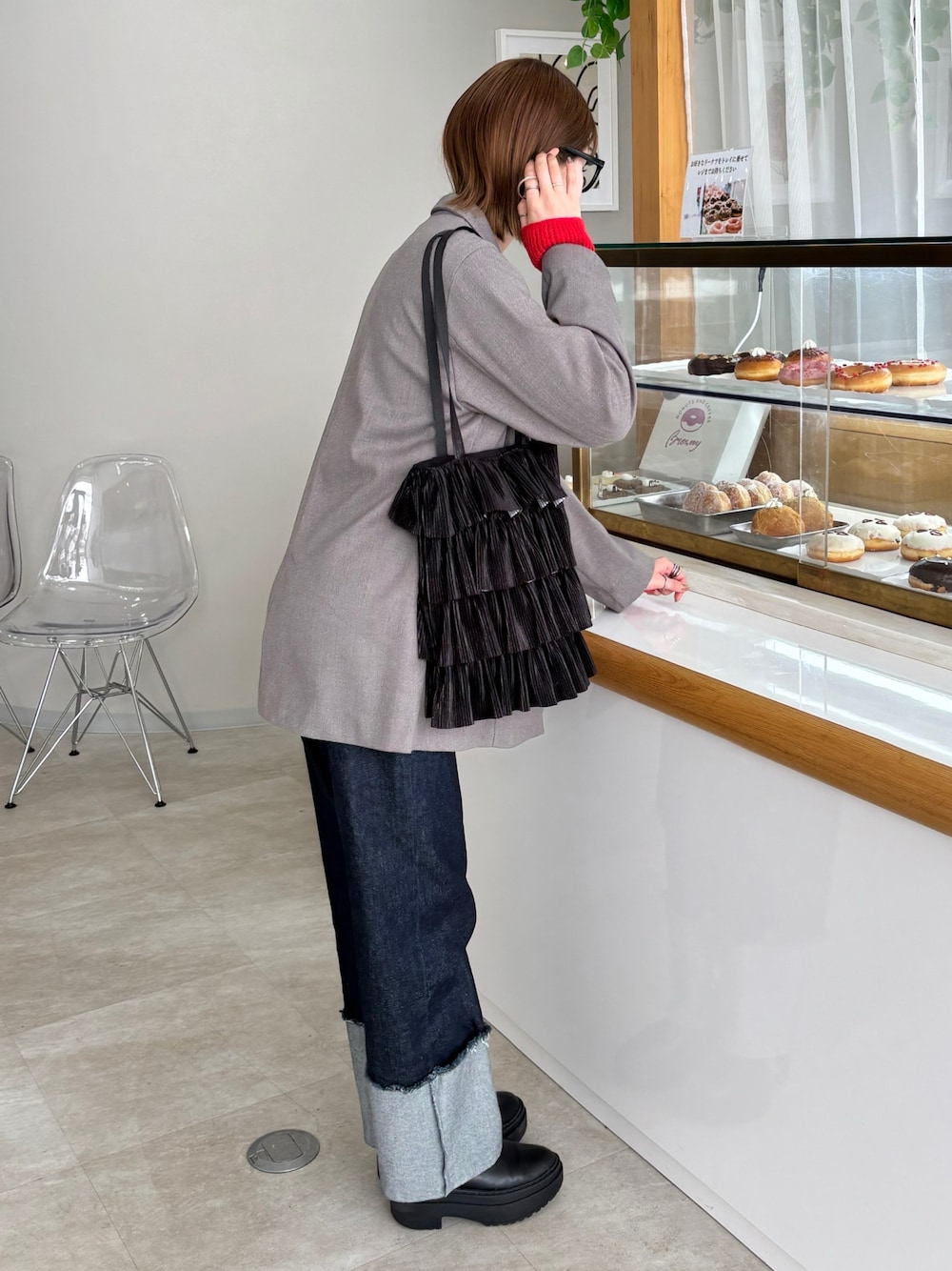 ディスコートのデニムのデザインお気に入り♡ 差し色の赤がかわいい🍅