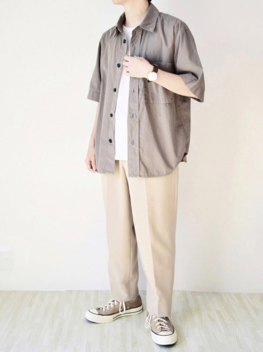 suiのシャツ/ブラウス「GARMENT DYE BASIC POPLIN(MHL SHOP限定)」を使ったコーディネート