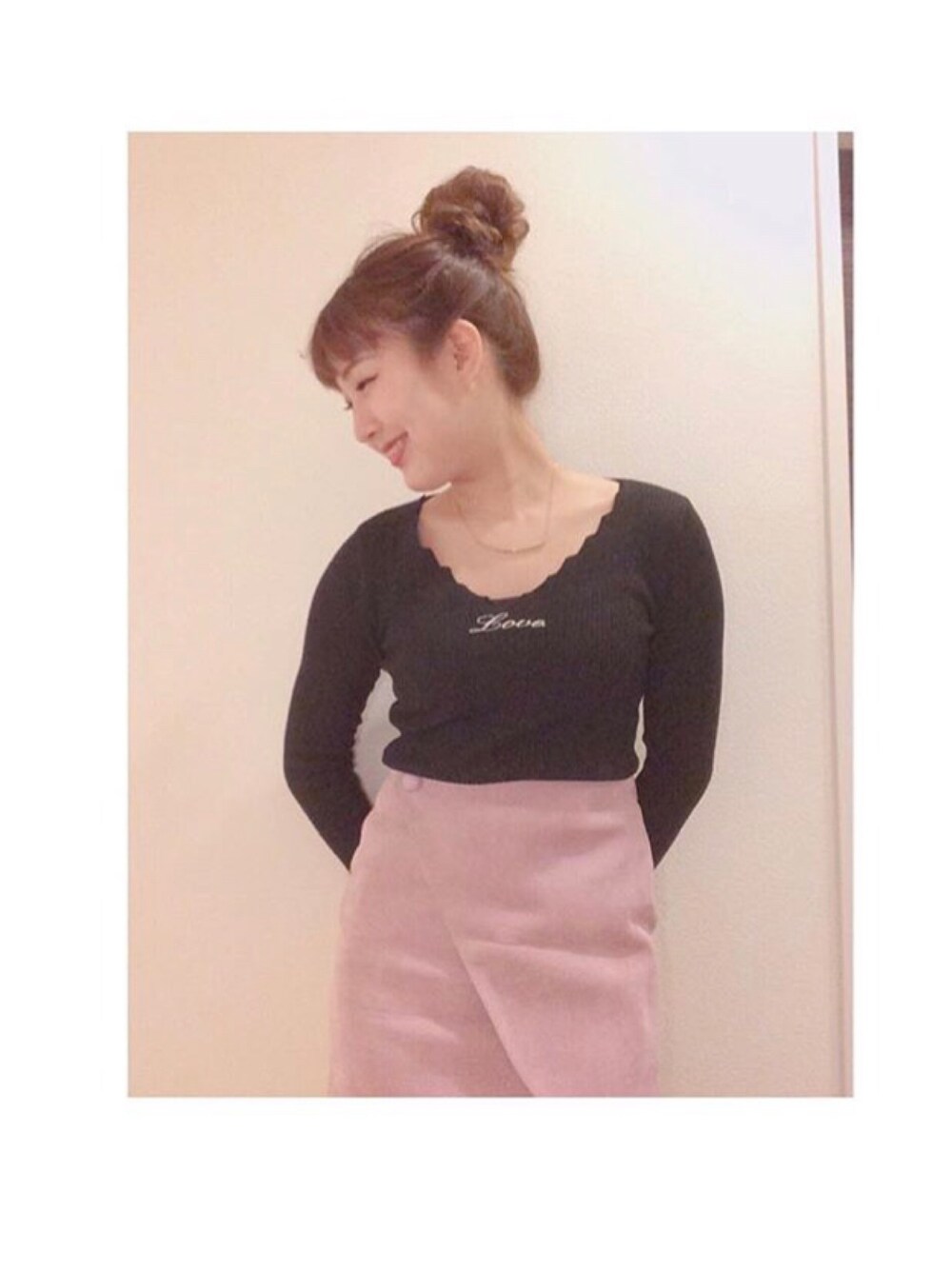 ブラック✖︎ピンクコーデ 大好きです♡♡♡ 襟元のひらひらが特徴のこのニットは とても形が可愛くてお気に入りです🌹
