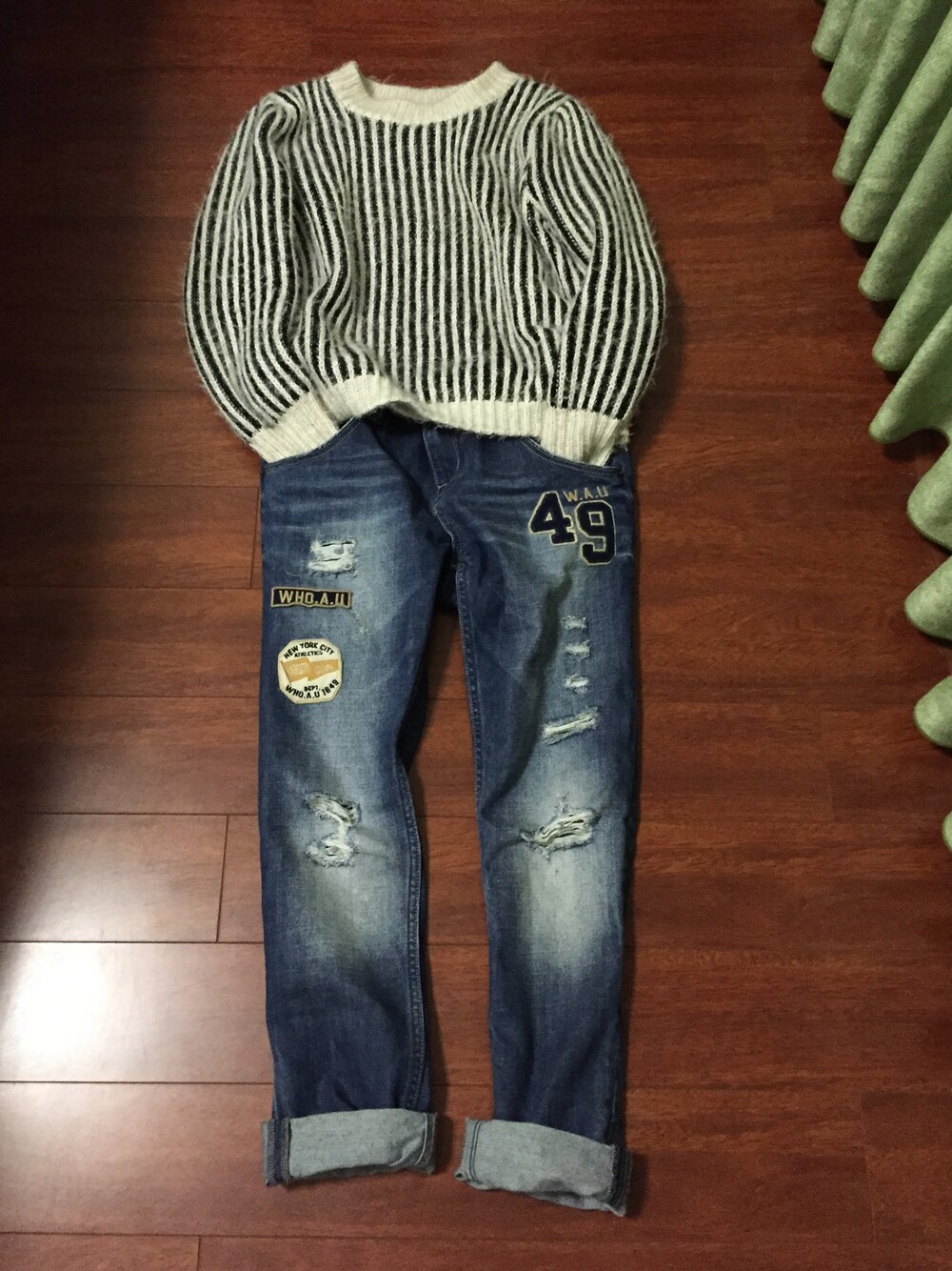 ブルー系のその他パンツを着用したレディースの冬コーディネートの1枚目の写真