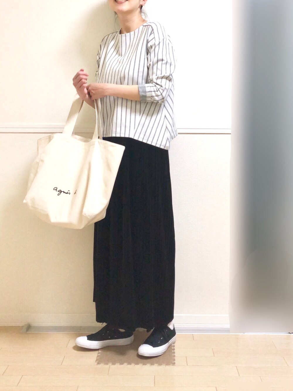 白と黒は落ち着きます🍵 肉厚トートバッグをヘビロテ中👜