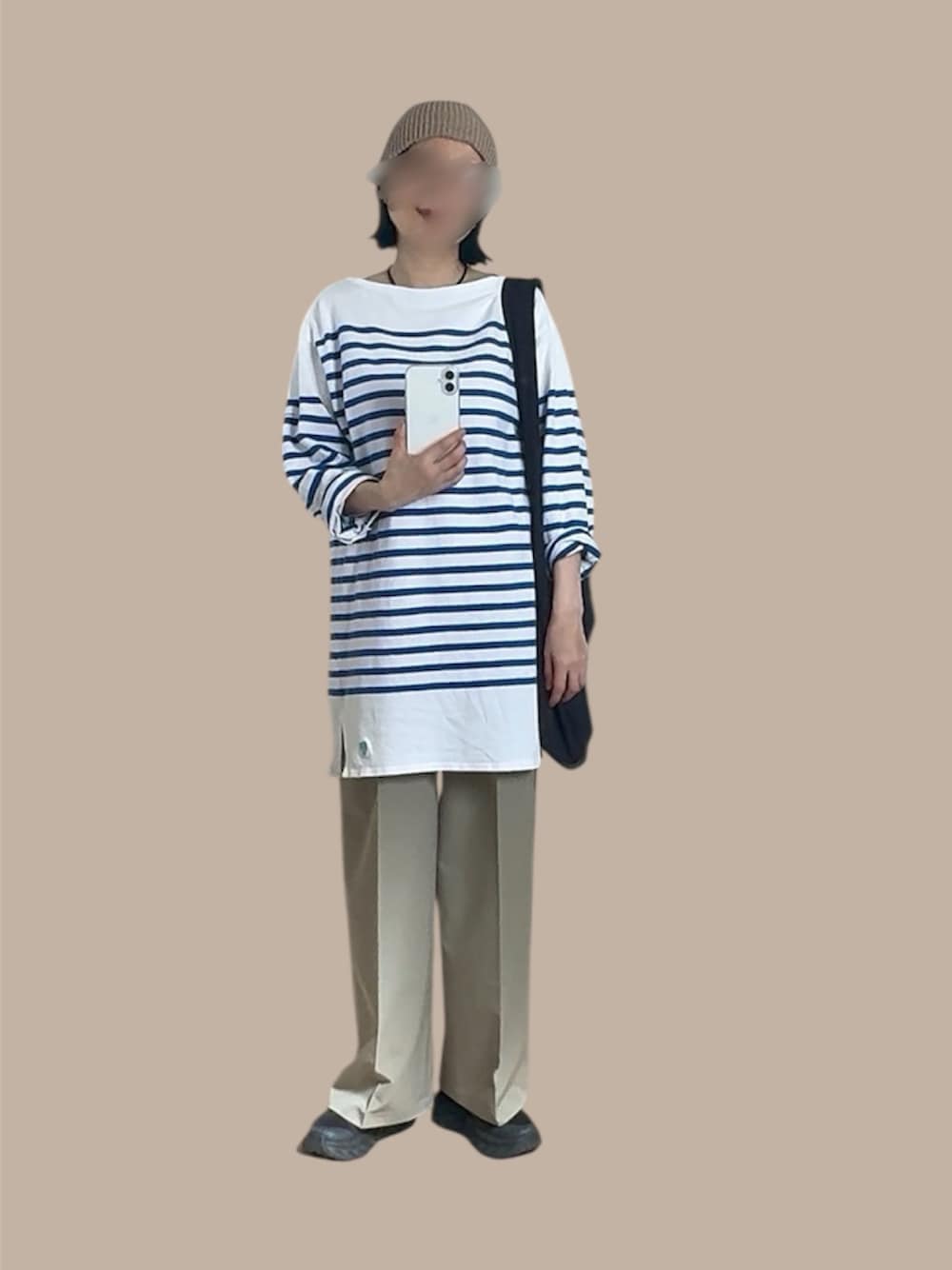 yu*のTシャツ/カットソー「ORCIVAL/オーシバル ラッセルボーダービッグシルエット RACHEL BIG #6101C」を使ったコーディネート