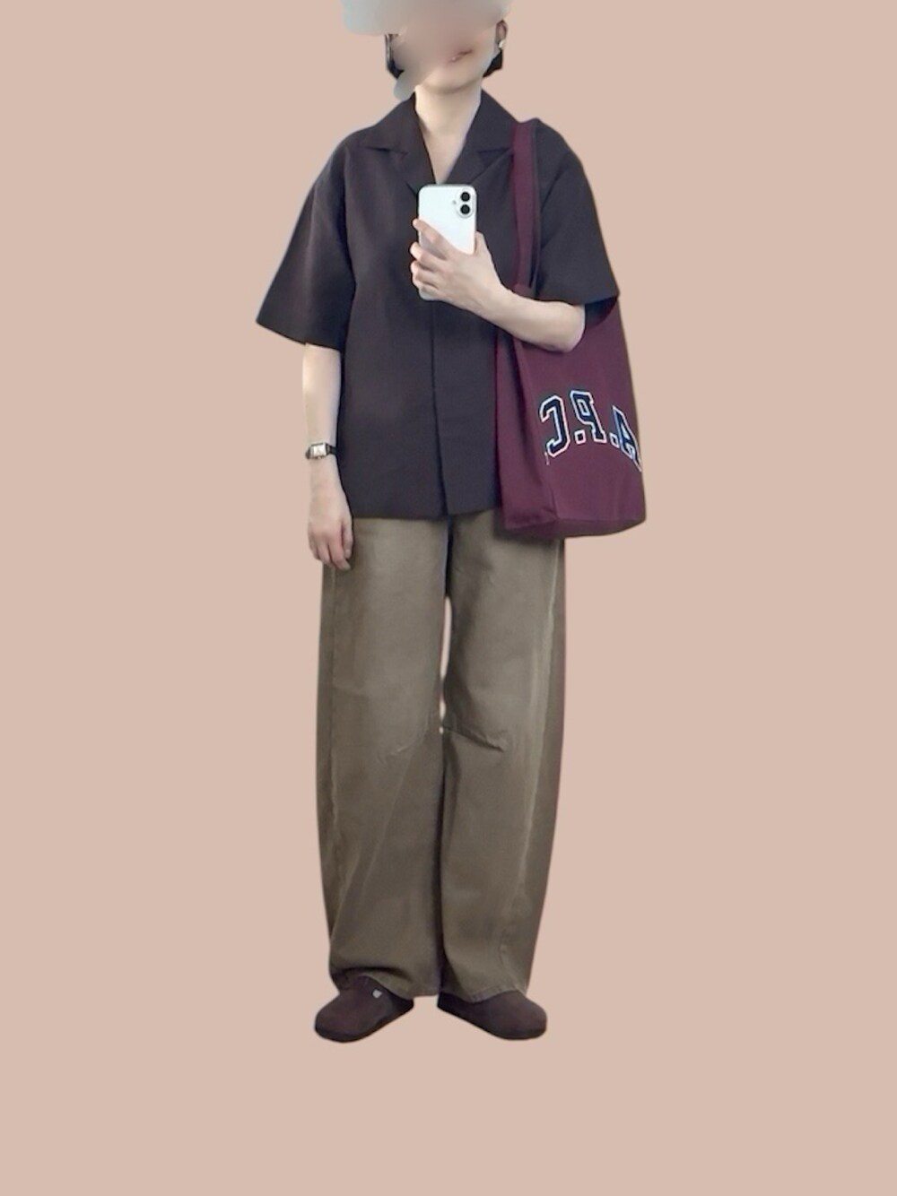 ブラウンだらけなコーデ🟤 どのブラウンも良いブラウン!特にこのシャツの色味が大好き✨ NOKCHAのこのデニムは形が良い〜👖