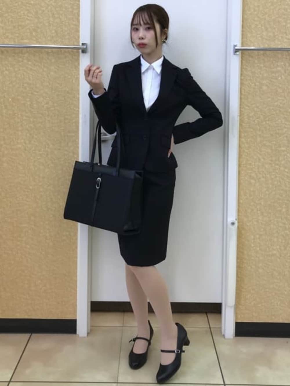 SUIT SQUARE(SUIT SQUARE)のスーツジャケット「【テーラードジャケット】自宅で洗える!ベーシックジャケット・黒/無地|セットアップ対応可|リクルートからビジネスまで!」を使ったコーディネート