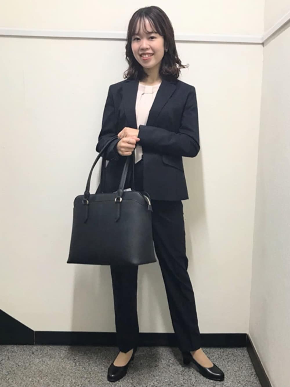SUIT SQUARE(SUIT SQUARE)のスーツパンツ「【洗える・防シワ・ストレッチ】美シルエットを追求!ベーシックテーパードパンツ/ネイビー/ストライプ|通勤&オフィス&入卒&セレモニー&オケージョン|セットアップ着用可・大きいサイズあり|」を使ったコーディネート