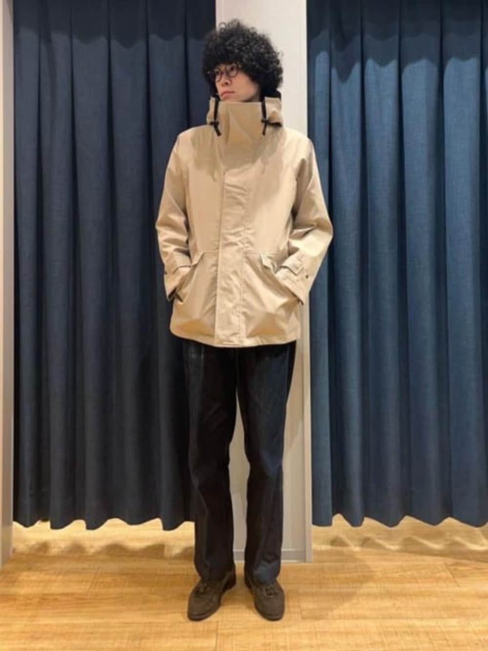 真のタウンユースはこちら! 防風性と防水性を兼ね備えた高機能アウターをカジュアルスタイリング! ON/OFF兼用でお召しいただけますので、休日スタイルにもサラッと羽織っていただけます! ベージュカラーがアクセントになりますが、秋冬は少し明るめな色を入れると印象がグッと上がるのでオススメです◎ フードは耳を隠すと共に前ツバがあるので暴風雨にも耐え凌げます。笑