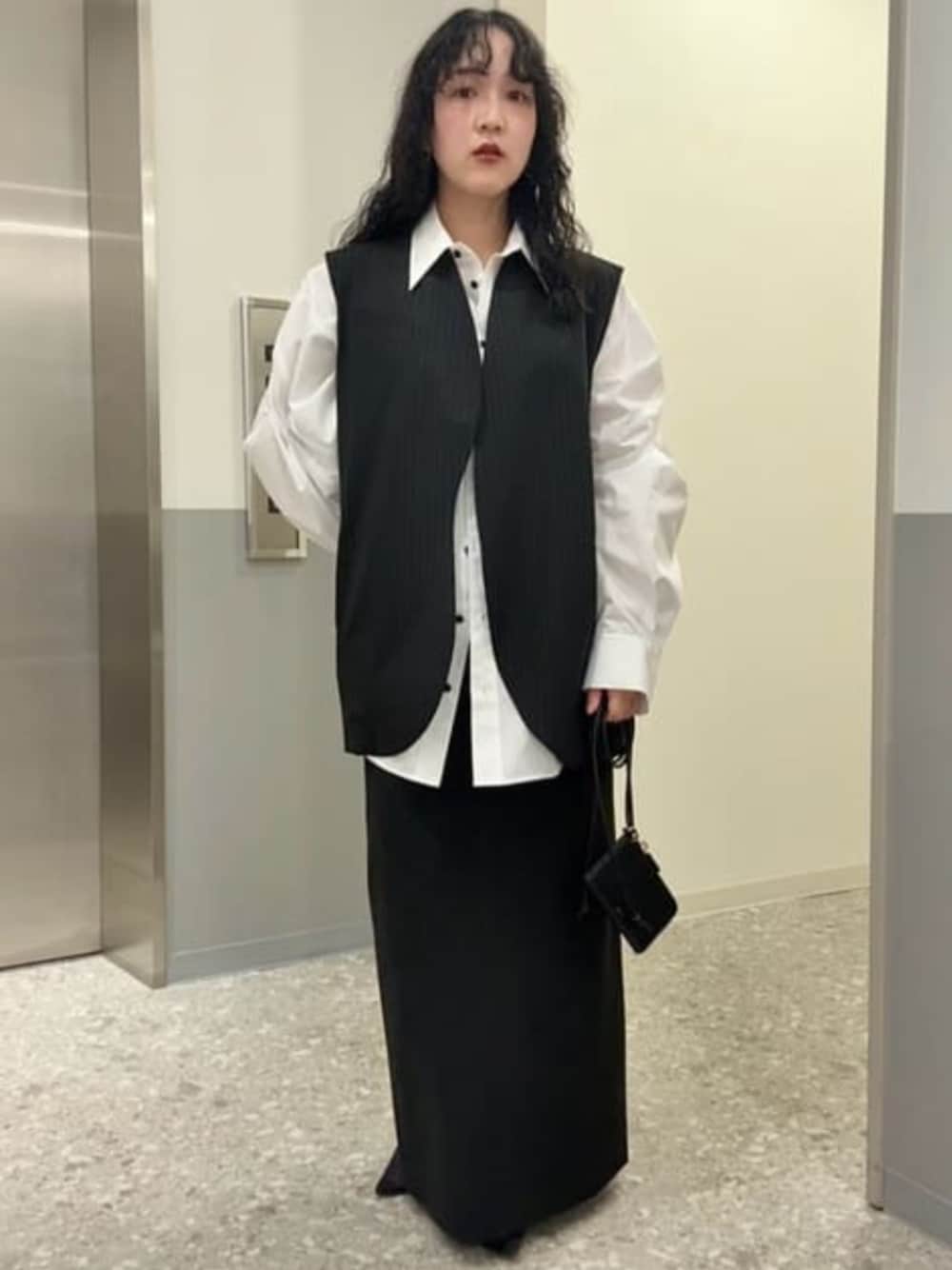 ストライプの柄がジレは縦に、スカートは斜めに入っているので、こなれ感たっぷりのセットアップです♡ 今回はストンと落ちるようなIラインシルエットを意識しつつ、モノトーンでまとめて大人っぽさ全開にしてみました👠 今後、単品使いのコーディネートもご紹介していきますのでぜひチェックしてください👀